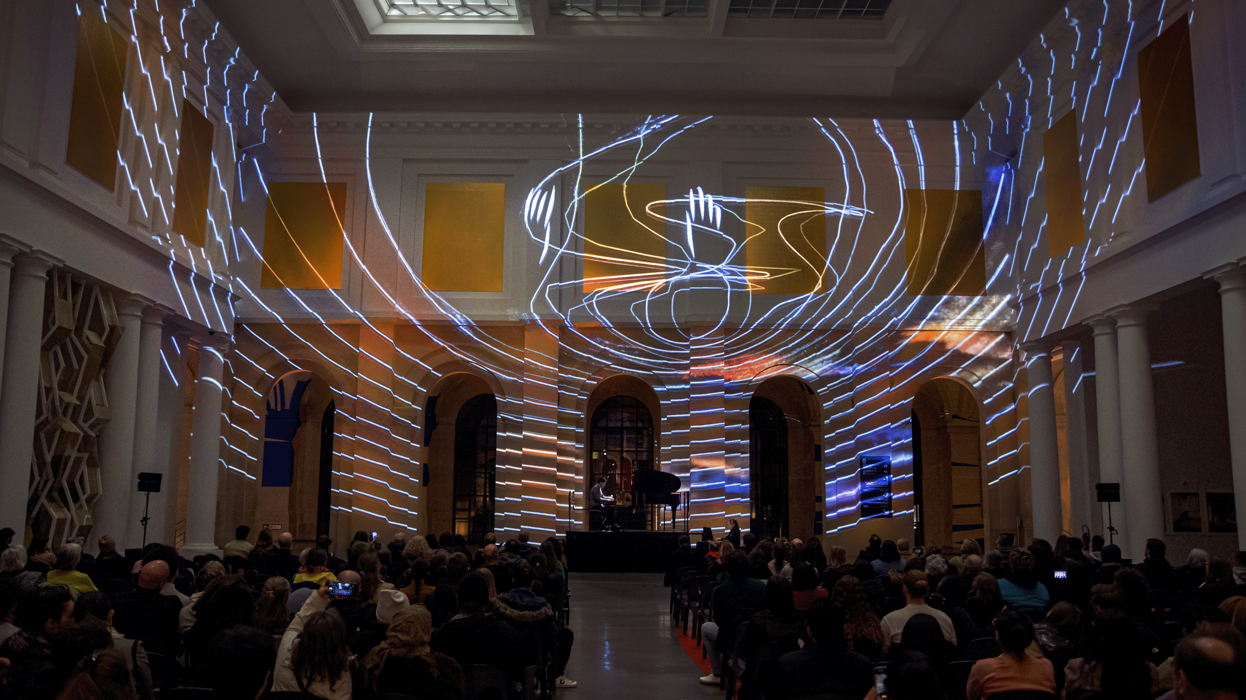 I design environments where computation meets human perception. My installations magnify the organic patterns already present in our surroundings, asking how motion, light, and sound can generate sensibility in people—shifting attention and building a felt common place.